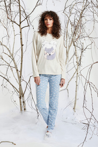 Shearly Dámské pyžamo Sorbetto grey - 100% bavlna, 3D aplikace, kalhoty se šňůrkou na stažení