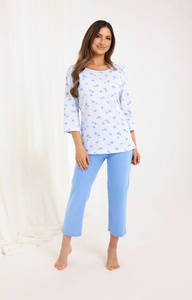 702 Bavlněné modré pyžamo Regina - dámské, 3/4 rukáv, 7/8 vzorované kalhoty