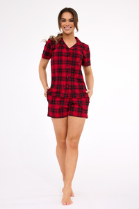 124/305 Denali Cornette- pánské bavlněné pyžamo s dlouhým rukávem, červené, kostkované kalhoty
