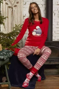 Arktyka Dámské pyžamo s dlouhým rukávem, dlouhé kalhoty Italian Fashion - červená/potisk