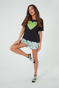 Picos Dámské pyžamo s krátkým rukávem a šortky Italian Fashion - černá/potisk