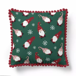 5383 Vánoční dekorační povlak na polštářek Christmas Deco Detexpol skřítci a sněhové vločky na zeleném pozadí - zip