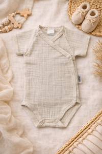 Mušelínové body Just Muslin 03235BE Makoma béžová - dlouhý rukáv, obálkové zapínání, 100% bavlna
