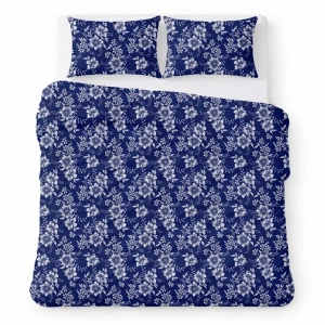 Bavlněné ložní povlečení z krepové bavlny komplet prodyšné bez žehlení navy blue with white flowers