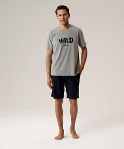 Pánské pyžamo NMP-395 - šedomodré, bavlněné, s krátkým rukávem, lehké a pohodlné na léto