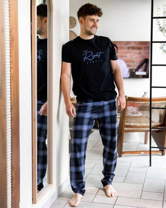 Ricardo Pánské pyžamo s krátkým rukávem a dlouhými kalhotami Italian Fashion - tmavě modré