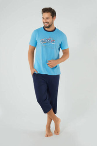 Junak Pánské pyžamo s krátkým rukávem a 3/4 kalhoty Italian Fashion - modrá/zelená