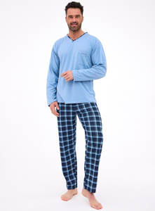 Pánské pyžamo NMP-389 Atlantic - modrá bavlna, dlouhý rukáv, stylový komplet pro chladné noci