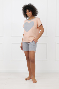 Dámské pyžamo Key LNS 759 korálové – bavlna, krátké, kapsy
