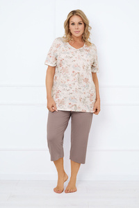 Ermida Dámské pyžamo s krátkým rukávem, 3/4 kalhoty Italian Fashion - potisk/kapucino