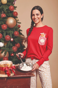 482/447 Gold Cornette dámské pyžamo - vánoční, bavlna, tmavě modrá, zapínání na knoflíky