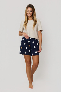 Dámské pyžamo Mefemi by Nipplex Oceane beige - žebrovaná viskóza, tričko a šortky s hráškem