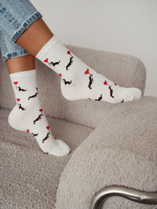 0200-201 Dámské ponožky Milena Jezevčíci Valentine's Day černé-bavlněné, srdíčka, vel. 37-41