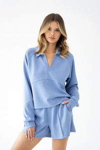 Dámský komplet Sensis Blaire modrý – mikina s polo límečkem a šortky