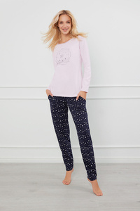 Glamour Dámské pyžamo s dlouhým rukávem a dlouhými kalhotami Italian Fashion - růžová/potisk