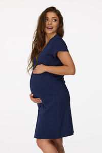 ne. 21 Těhotenská noční košile Senizo navy blue - 100% bavlna, krátký rukáv, zapínání na knoflíky při kojení