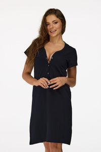 ne. 16 Těhotenská noční košile Senizo navy blue - 100% bavlna, krátký rukáv, zapínání na knoflíky při kojení