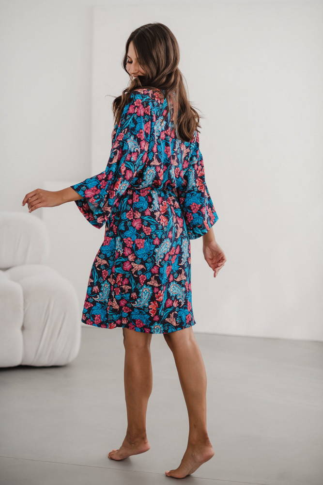 Szlafrok został zaprojektowany z myślą o mamach, dlatego jest nieco dłuższy, abyś spokojnie okryła nim ciążowy brzuszek. Po porodzie bez skrępowania b będziesz mogła spacerować po szpitalnym korytarzu lub na leżąco nakarmiła maluszka w połogu. Posiada kieszenie na niezbędne drobiazgi i pasek do regulowania szerokości.