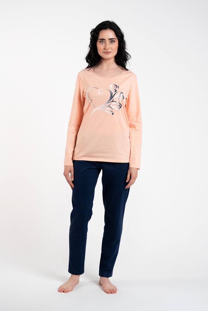 Arietta Dámské pyžamo a kalhoty s dlouhým rukávem Italian Fashion - lososová barva