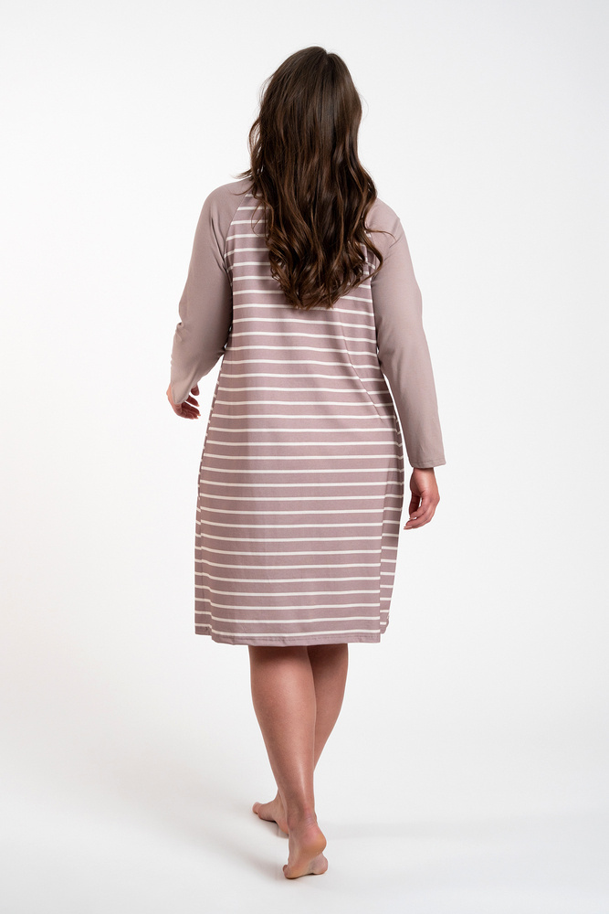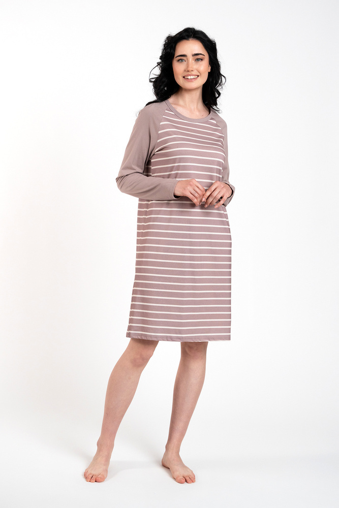 Dámská bavlněná noční košile je zárukou pohodlí a svobody, kterou si každá žena přeje a zaslouží! Lehká, volně padnoucí košile na spaní a bezpečná a k pokožce šetrná tkanina zajistí pohodlí za chladných i teplých nocí. Noční košile s dlouhým rukávem a délkou ke kolenům je ideální na doma i na cesty a nadčasový pruhovaný vzor sluší každé ženě. Noční košile ze 100% bavlny je k dispozici ve dvou barvách - grafitové a cappuccino - a ve velikostech S až XXL.