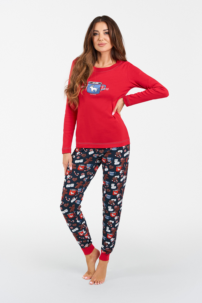Makala Dámské pyžamo s dlouhým rukávem a dlouhé kalhoty Italian Fashion - červená/potisk