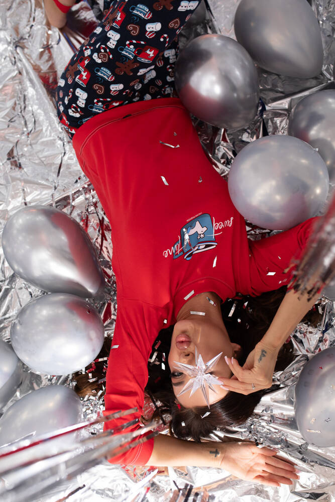 Takové parádní módní dámské pyžamo je ideální pro večerní posezení s kamarádkami nebo jen pro zajištění příjemného večera. Dámské pyžamo s dlouhými kalhotami a dlouhými rukávy zdobí roztomilý vzor sušenek, který je ideální pro sladké snění. Má jednoduchý střih, který zajišťuje pohodlí a volnost pohybu, a přírodní materiál, který poskytuje nejlepší možné podmínky pro pokožku. Mikina dámského pyžama má kulatý výstřih a potisk na přední straně, zatímco kalhoty - všechny ve vzoru - mají na nohavicích pohodlné žebrované manžety. Bavlněné dámské pyžamo je k dispozici ve velikostech S až XL v odstínech tmavě modré a červené jako hlavní barvy.
