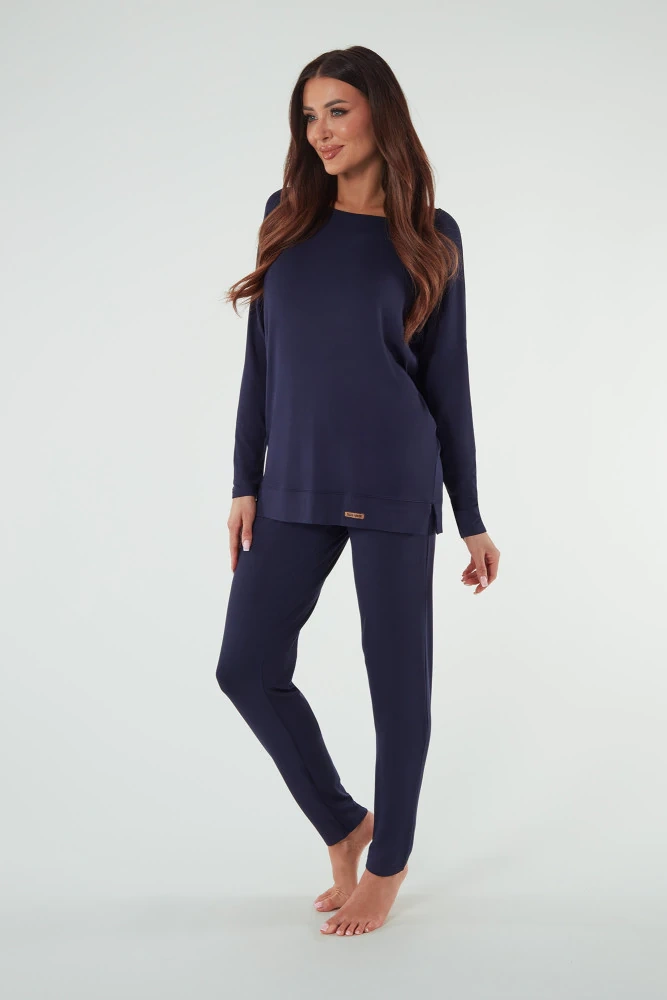 Akord Dámský komplet s dlouhým rukávem a dlouhými kalhotami Italian Fashion - tmavě modrý