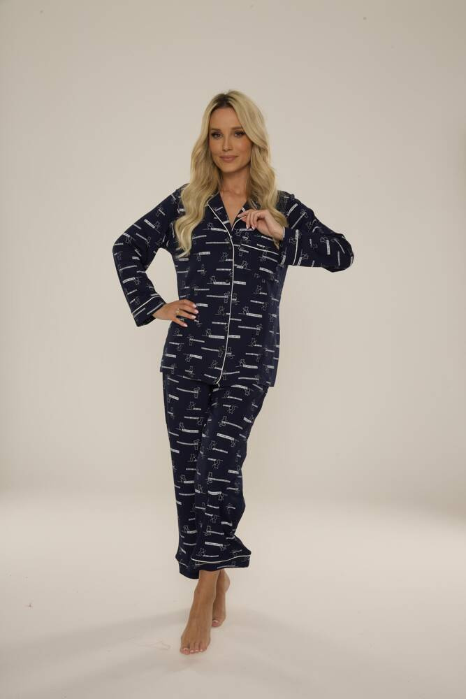 718 Madeleine Cat Love Dámské pyžamo Forex - tmavě modré