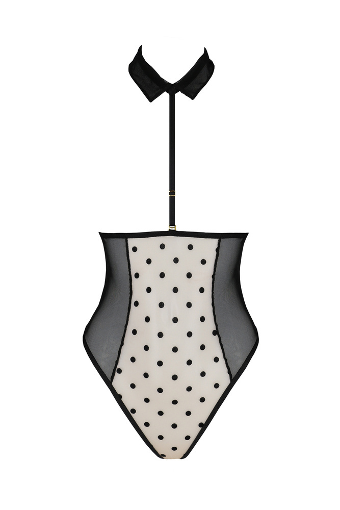 Toto velmi sexy body Trisha je návrhem značky Passion, která je určena ženám, které si uvědomují své tělo a svou ženskost. Ideální pro každou příležitost, kdy se chcete předvést. Představený model plně odhalených prsou. Korzetové spojení na zádech pro pohodlné nošení. Sexy odnímatelný choker v podobě límce dodává celému outfitu charakter. Model je k dispozici ve dvou barevných provedeních - černém a béžovém.
