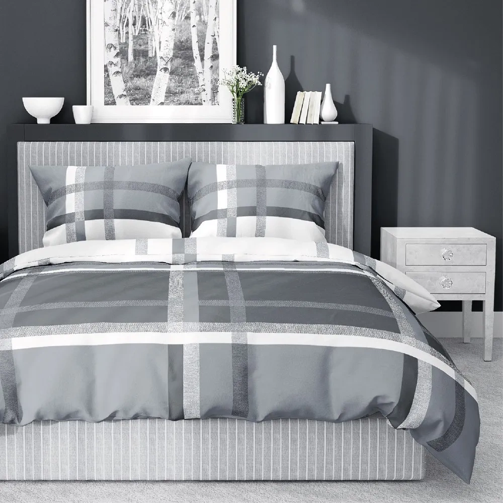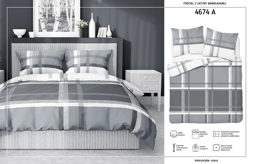 4674 A Home Satin Pościel satynowa krata Detexpol szary