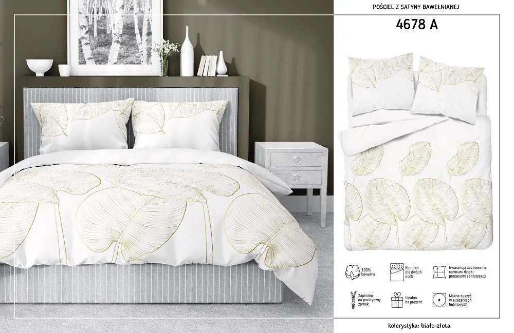 4678 A Home Satin Pościel satynowa liście Detexpol kremowy