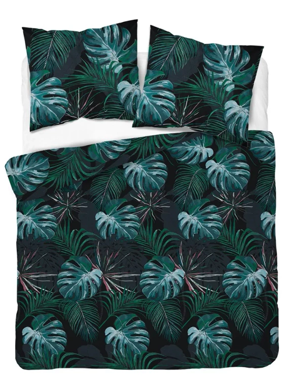 4680 B Home Satin Pościel satynowa liście Detexpol czarny