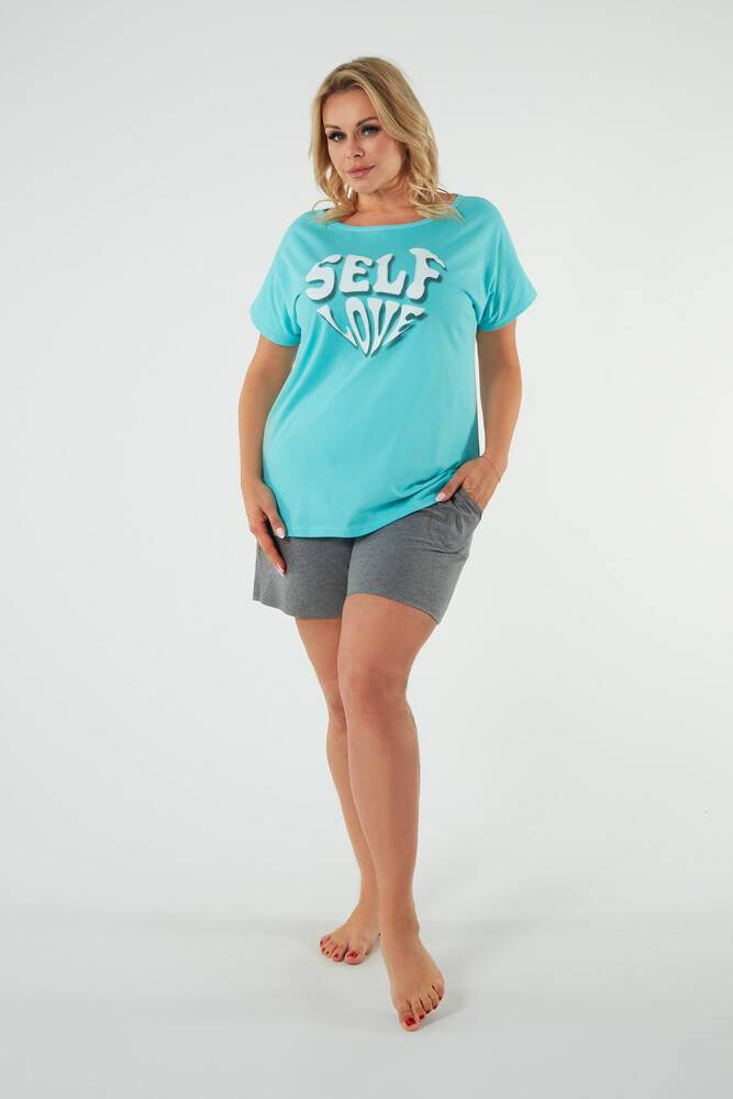 Selfie Dámské pyžamo s krátkým rukávem, šortky Italian Fashion - tyrkysová/melanžová