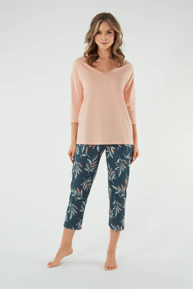 Julietta Dámské pyžamo 3/4 rukávy, 7/8 kalhoty Italská móda - lososová/potisk