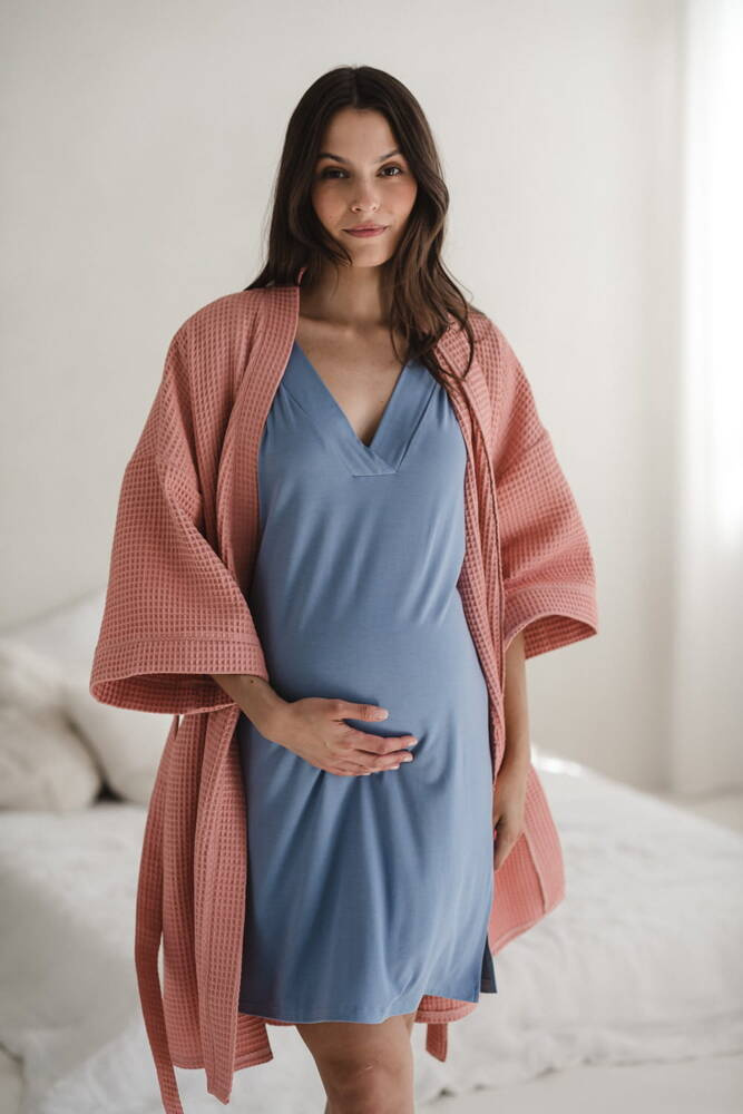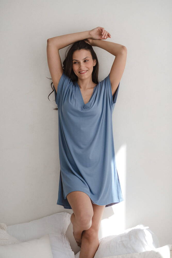 Moon bambusowa koszula nocna ciążowa i do karmienia Milk&Love ciemny błękit