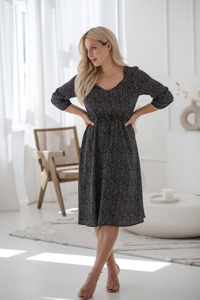 Lovely Dress Midi sukienka ciążowa i do karmienia rękaw 3/4 Milk&Love kropki na czarnym