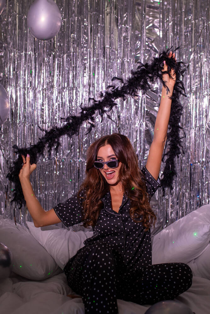 Měkké saténové dámské pyžamo je něco pro ženy, které chtějí svou kolekci nočního prádla ozvláštnit. Volný, rovný střih pro pohodlné nošení. Dámské pyžamo se zapínáním na zip po celé délce a pohodlnými patentkami. Výstřih je zakončen decentním límcem. Kalhoty mají pohodlnou elastickou gumu, která netlačí a perfektně sedí. Elegantní dámské pyžamo je také zdobeno módními srdíčky. Dodejme, že se jedná o saténové pyžamo, které je skvělou volbou pro ženy, které rády experimentují s módou.