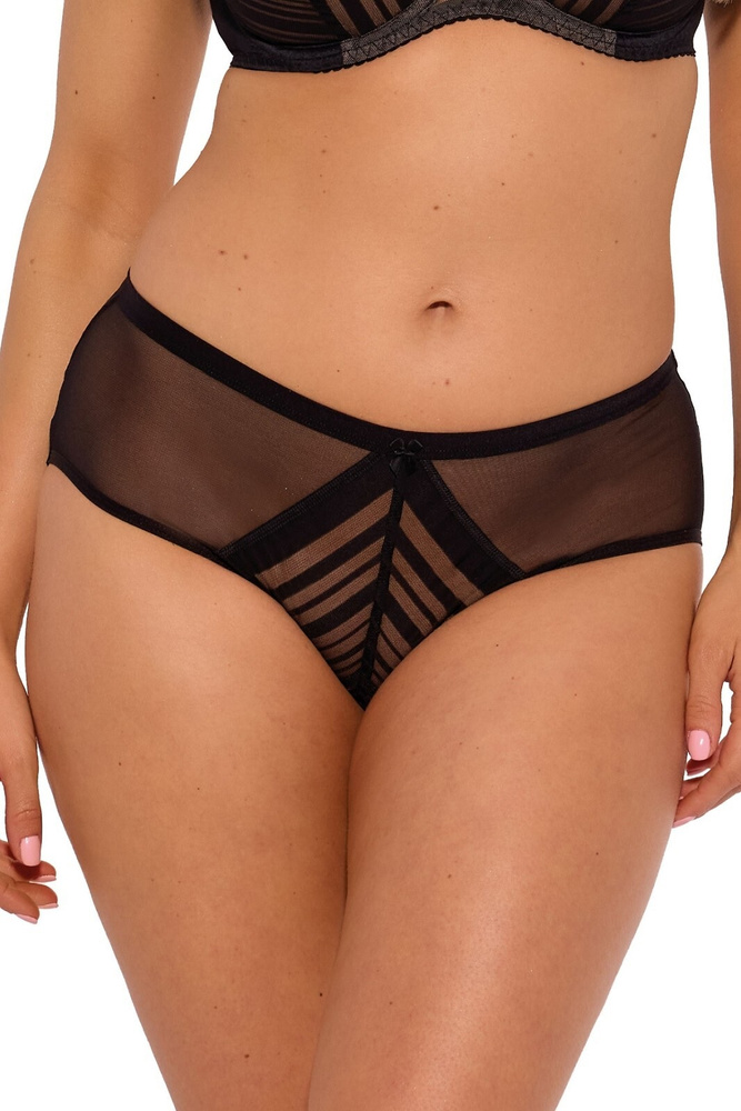 Působivé dámské kalhotky v plném klasickém střihu. Vyrobeno z průhledné pruhované síťoviny a hladkého mikrovlákna
