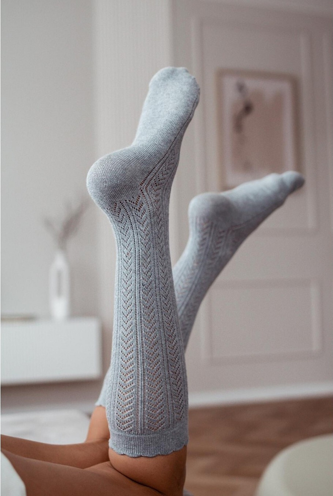 0330 Ażur Jodełka Podkolanówki damskie Milena - szary