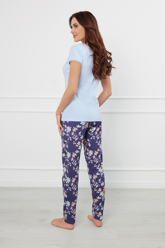 Pulia Dámské pyžamo s krátkým rukávem, dlouhé kalhoty Italian Fashion - modrá/potisk