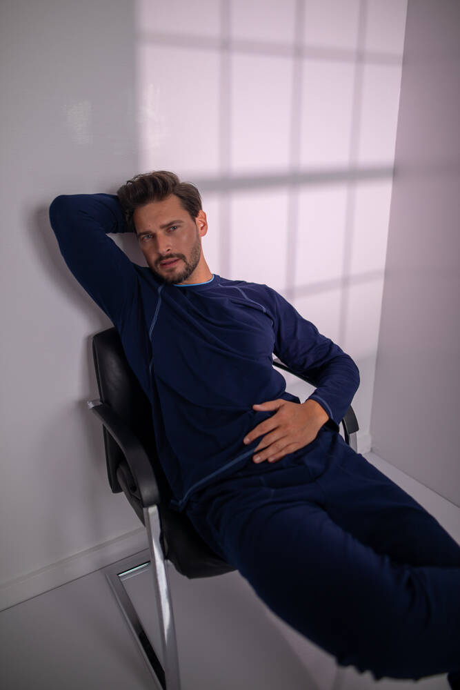 Salomon Pánské pyžamo s dlouhým rukávem, dlouhé kalhoty Italian Fashion - tmavě modrá/modrá