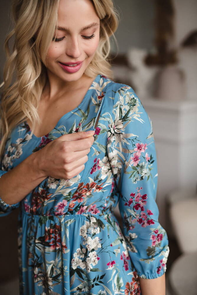 Lovely Dress Midi sukienka ciążowa i do karmienia rękaw 3/4 Milk&Love błękitna w kwiaty