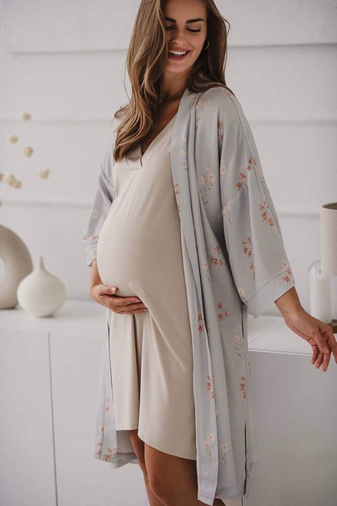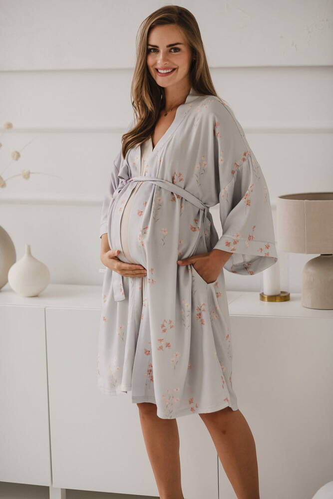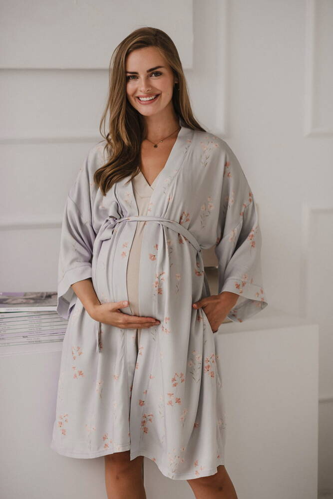 Szlafrok został zaprojektowany z myślą o mamach, dlatego jest nieco dłuższy, abyś spokojnie okryła nim ciążowy brzuszek. Po porodzie bez skrępowania b będziesz mogła spacerować po szpitalnym korytarzu lub na leżąco nakarmiła maluszka w połogu. Posiada kieszenie na niezbędne drobiazgi i pasek do regulowania szerokości.