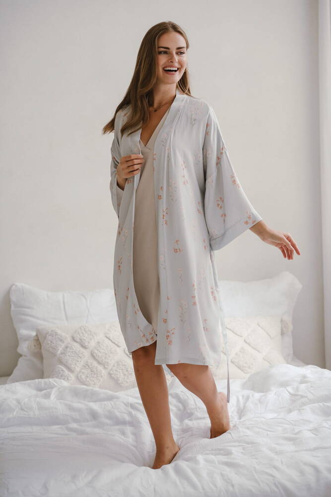 Flowers on Blue szlafrok bambusowy ciążowy Milk&Love niebieski