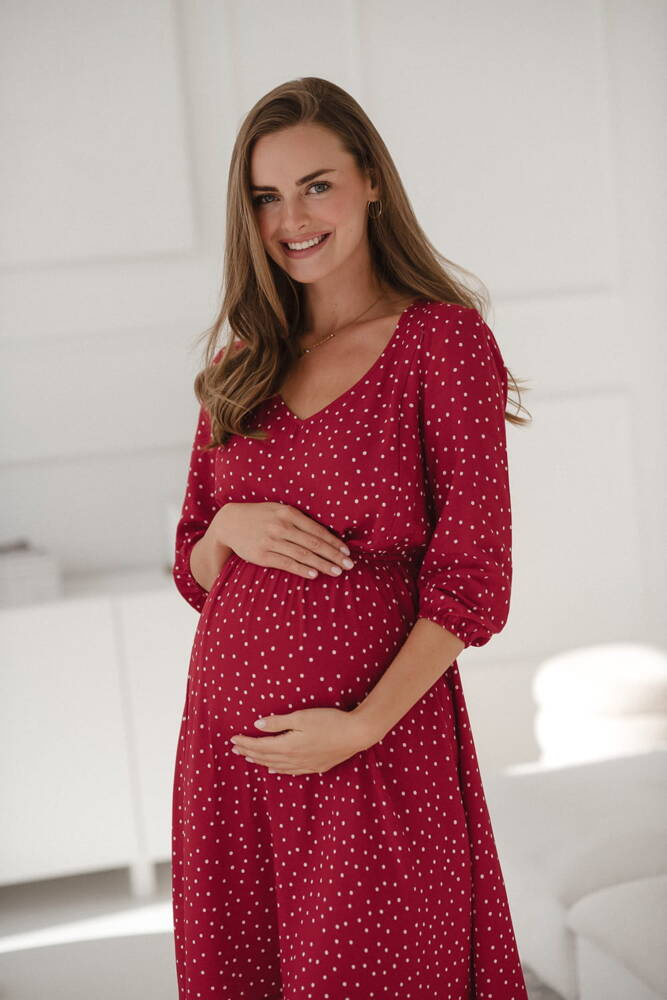 Lovely Dress Midi sukienka ciążowa i do karmienia rękaw 3/4 Milk&Love czerwona w groszki
