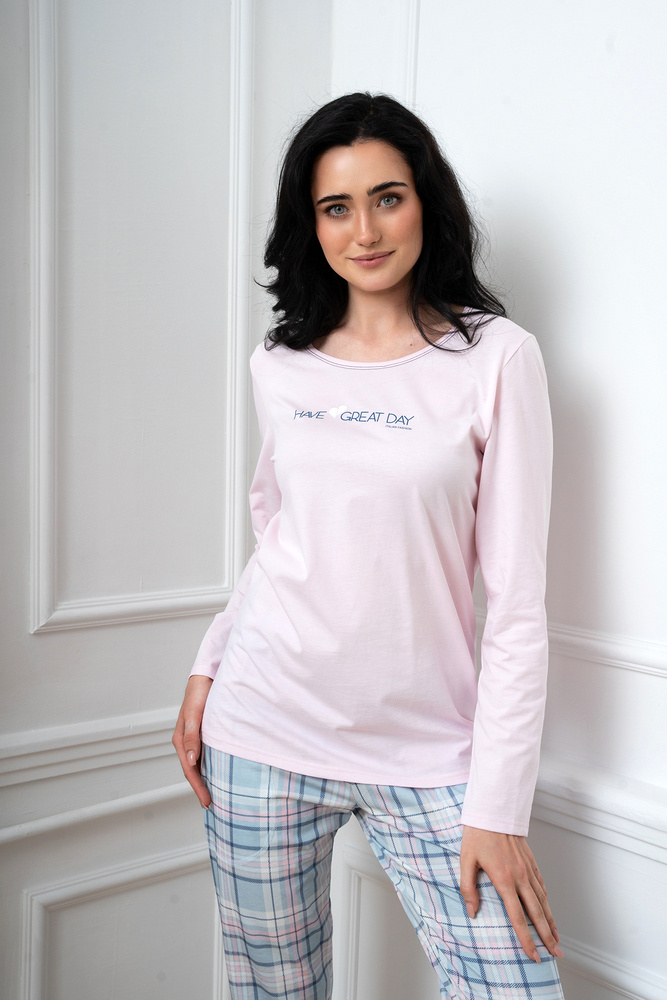 Glamour Dámské pyžamo s dlouhým rukávem a dlouhými kalhotami Italian Fashion - růžová/potisk