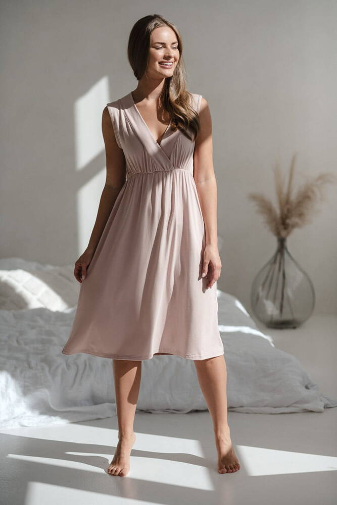 Koszula uszyta z wysokogatunkowej wiskozy bambusowej z dodatkiem elastanu, dzięki czemu nie "wyciąga się" i po praniu wraca do pierwotnego kształtu. Niezwykle elastyczna, dlatego świetnie sprawdzi się jako sukienka porodowa. Wystarczy odchylić dekolt, by szybko i dyskretnie nakarmić maluszka. To proste rozwiązanie sprawia, że każda chwila bliskości z dzieckiem staje się jeszcze przyjemniejsza. Uszyta z najwyższej jakości wiskozy bambusowej, która jest nie tylko przyjemna w dotyku, ale także ma właściwości antybakteryjne i oddychające. To doskonały wybór, zwłaszcza w gorące dni lub podczas intensywnych chwil z maluszkiem. Wybierając rozmiar, kieruj się aktualnym rozmiarem, który nosisz. Koszula doskonale dopasowuje się do figury, zapewniając komfort w każdej chwili.