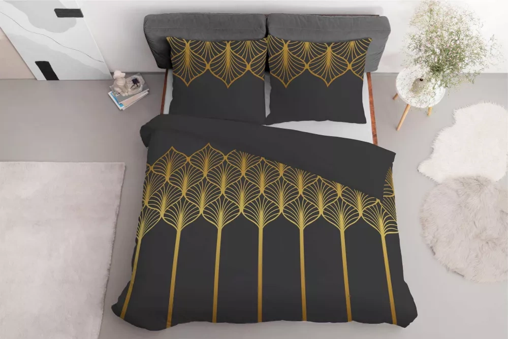 5225 A Pościel satynowa geometryczny motyw Detexpol czarny