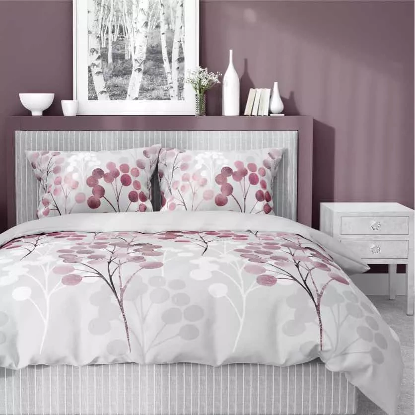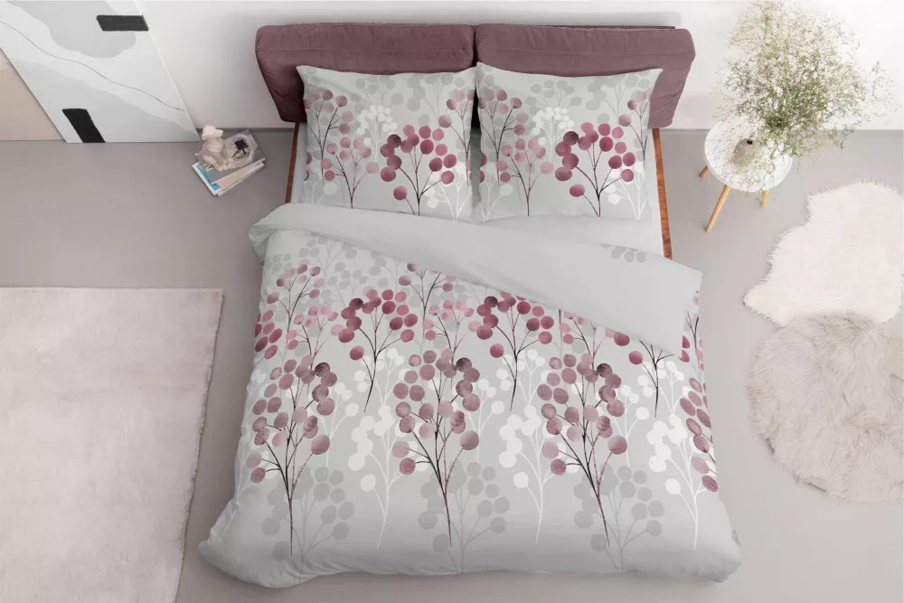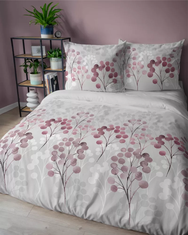 5223 B Pościel satynowa gałązki w odcieniach różu Detexpol szary