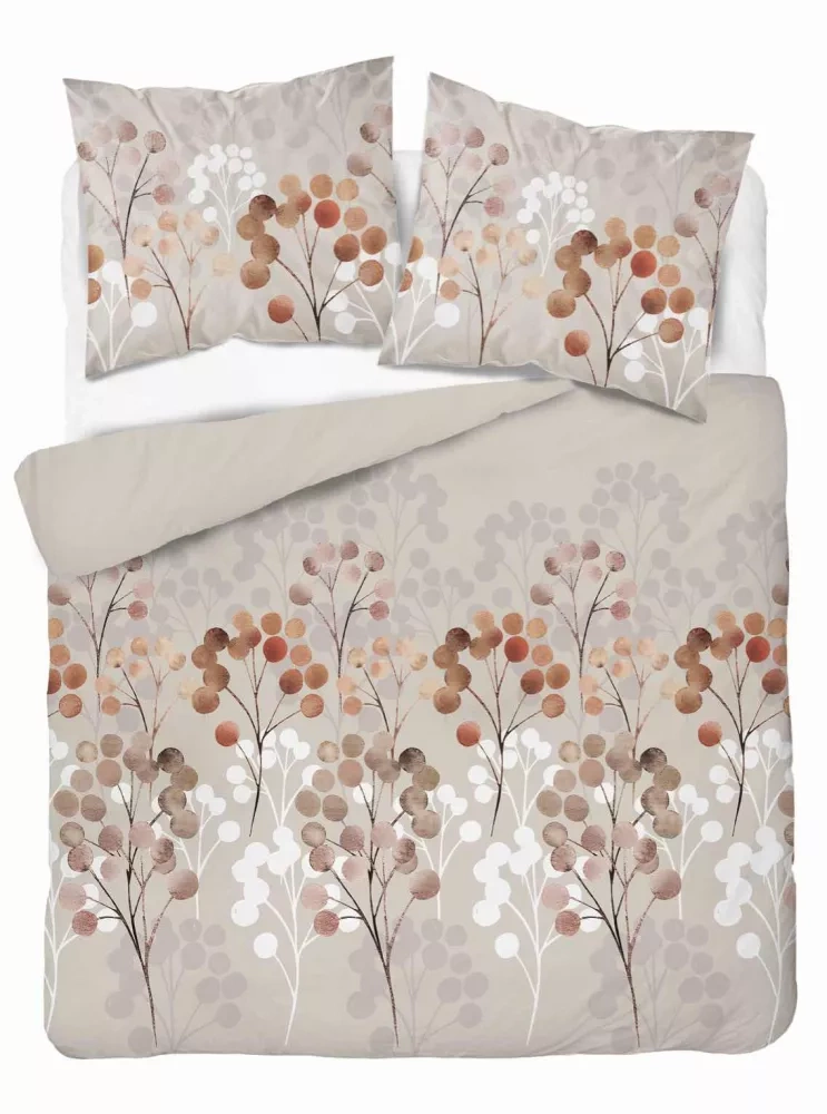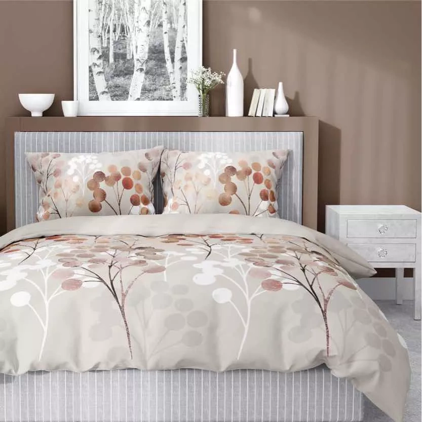5223 A Pościel satynowa gałązki z okrągłymi liśćmi Detexpol beżowy
